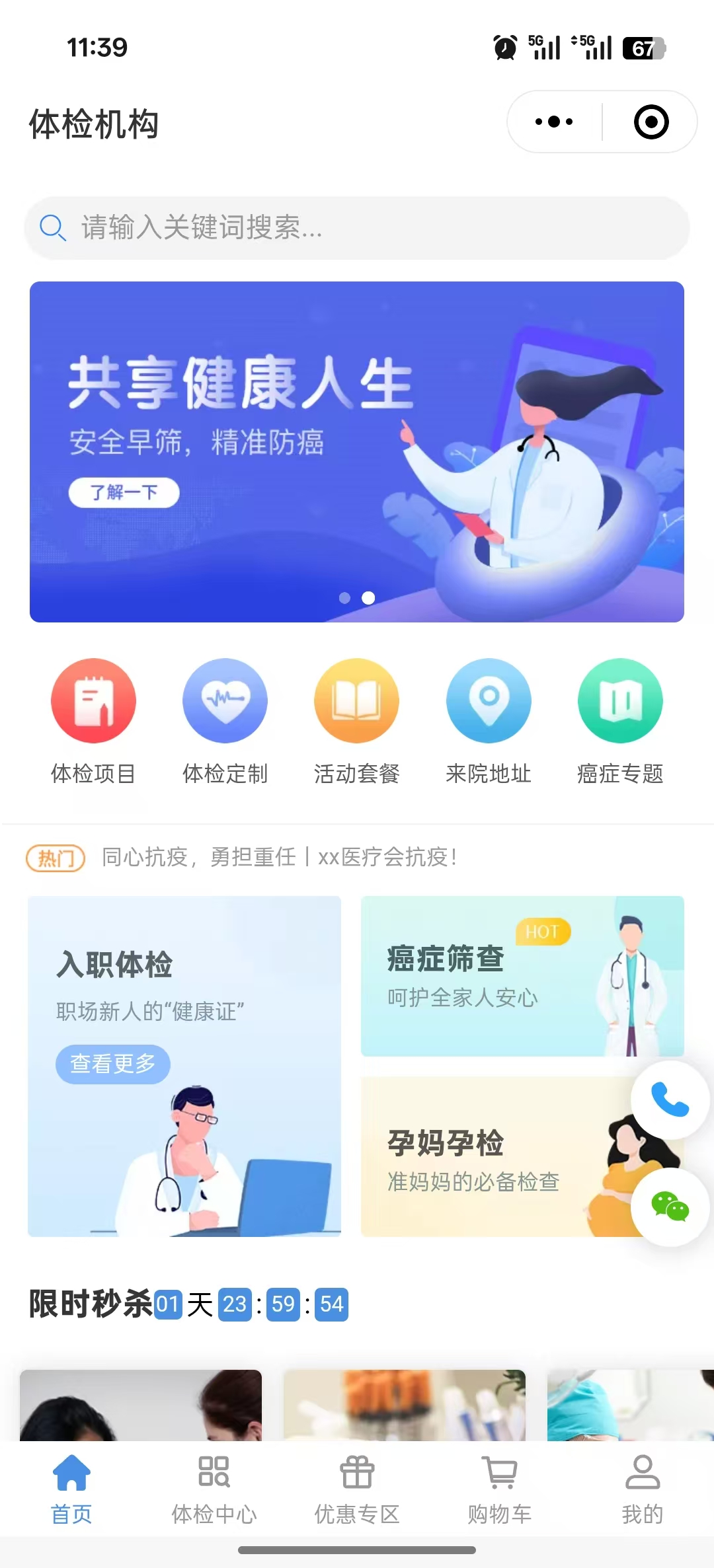 一键预约:用户可随时在线选择体检套餐与时段,避开线下挂号排队,预约耗时从平均30分钟缩短至3分钟。
